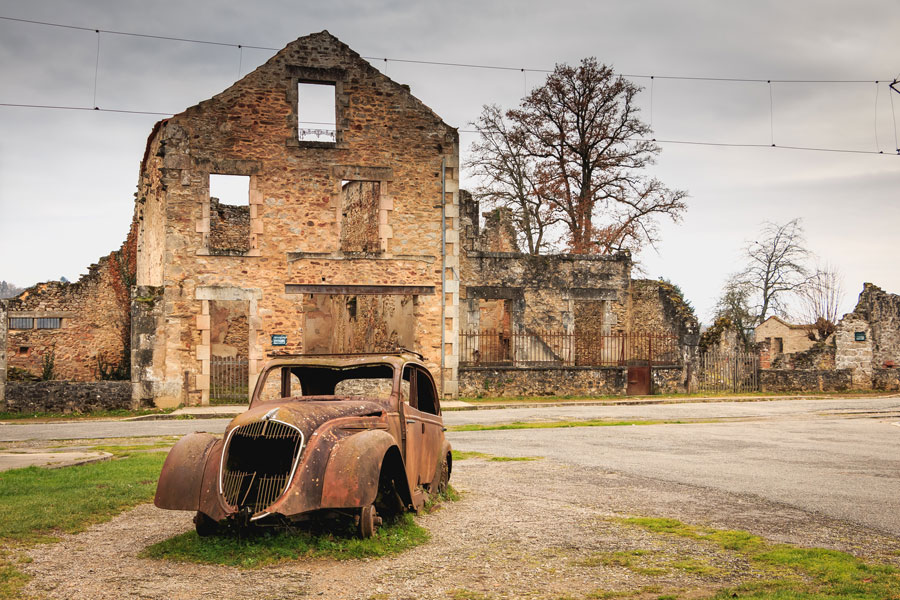 From the amazing scenery of Racamadour the route takes you north to Oradour sur Glane, a city that was “massacred” by the nazi occupation. In honor of the victims it has not been touched by human hands since and serves as a memory. Walking the deserted streets with 80 year old cars still parked is a very effective way to understand the horror of the nazis.
