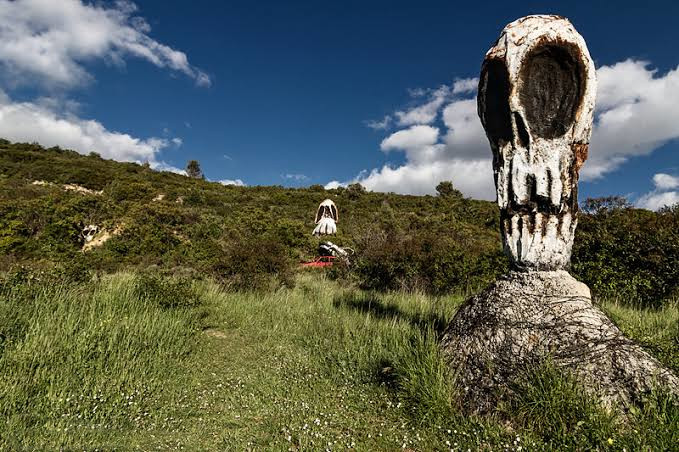 First stop today is the ghost-town Esco, followed by a visit to the Royal Palace of Olite. Now passing beautiful green rolling hills, the next “must see” on the route is the Parque de los Desvelados (parc of the sleepless) where giant skulls decorate the landscape.