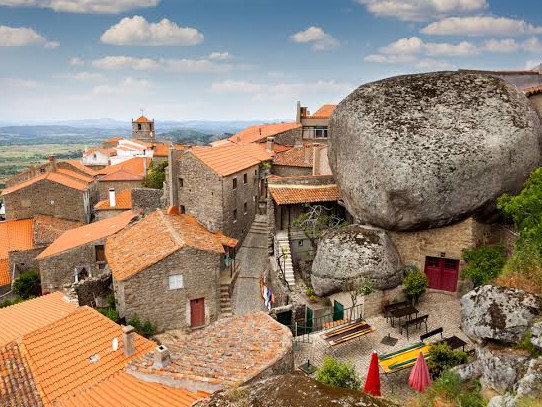 The route leaves the coast behind and follows the banks of the river Douro inland. It passes a 516 meter long, 1 meter wide, suspension bridge that hangs 175 meters above the river. Are you brave enough to walk across it, or will you settle for a photograph? After many hairpin-curves the route dives into the canyon of the river Zezere. It ends in Monsanto, a village build around and in between giant boulders.